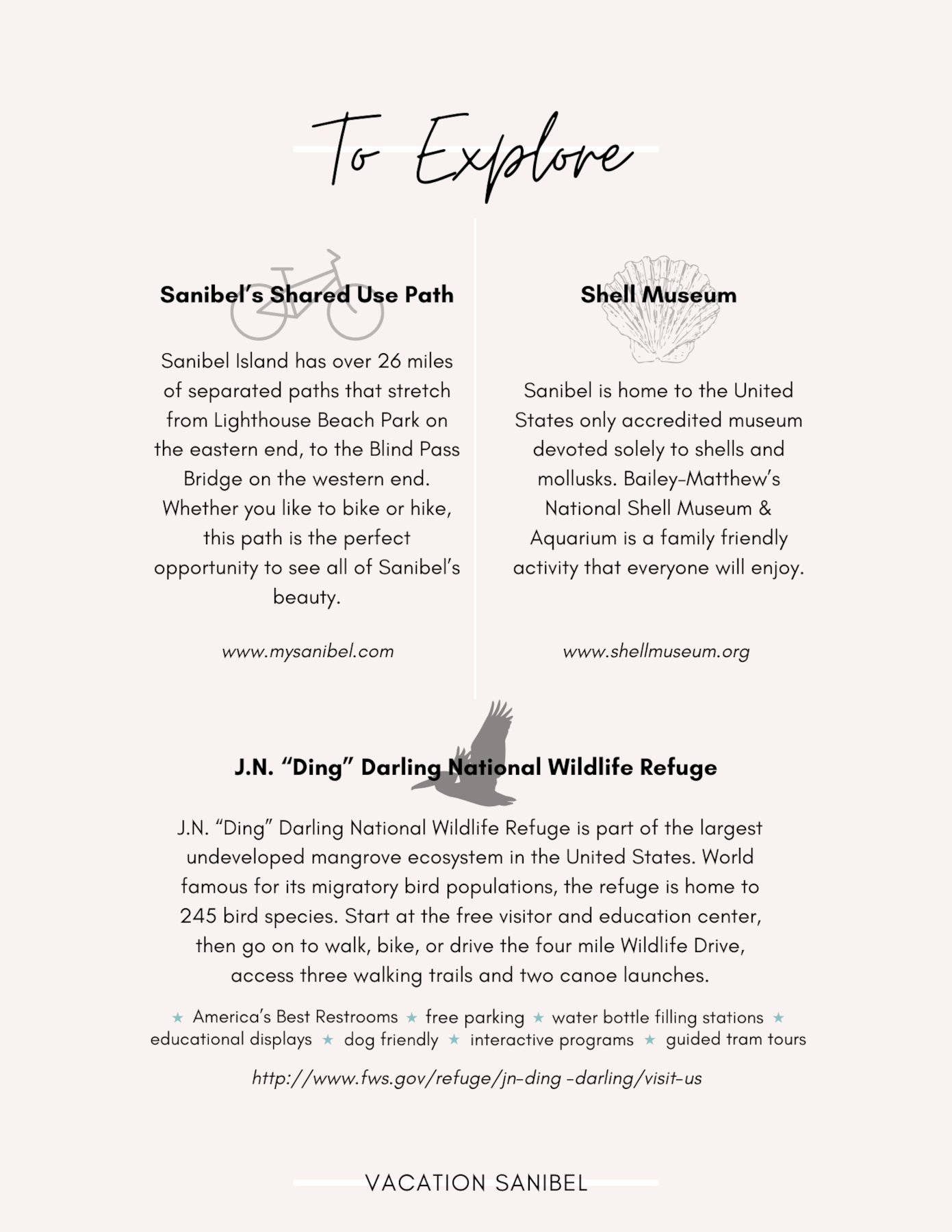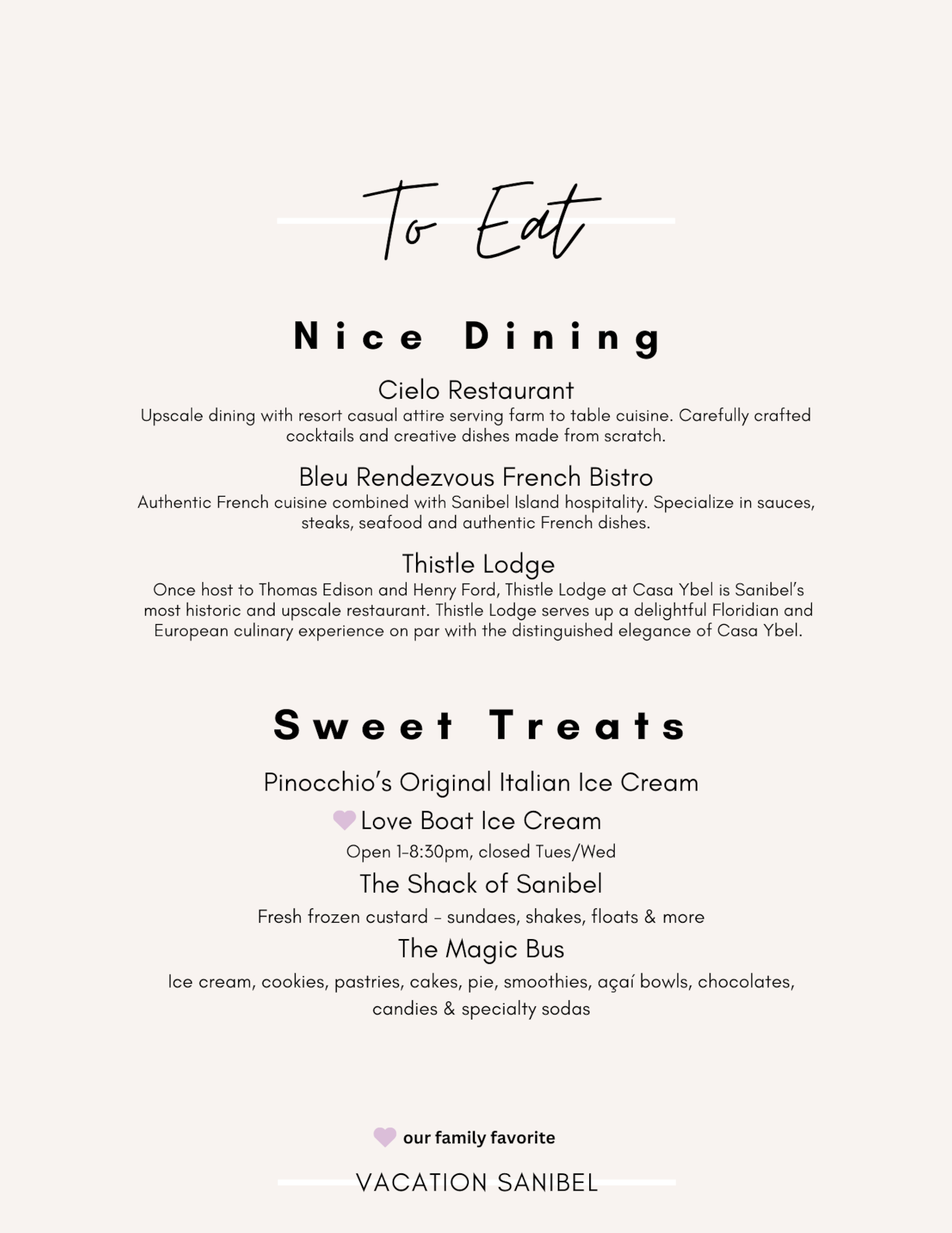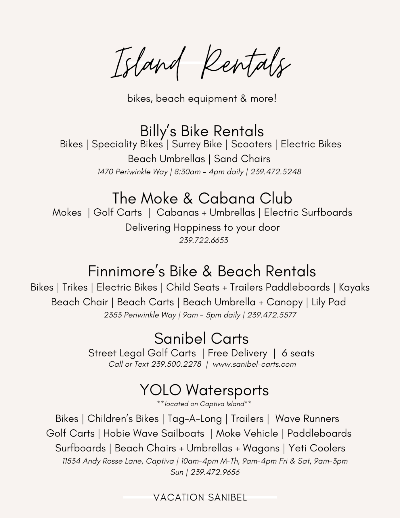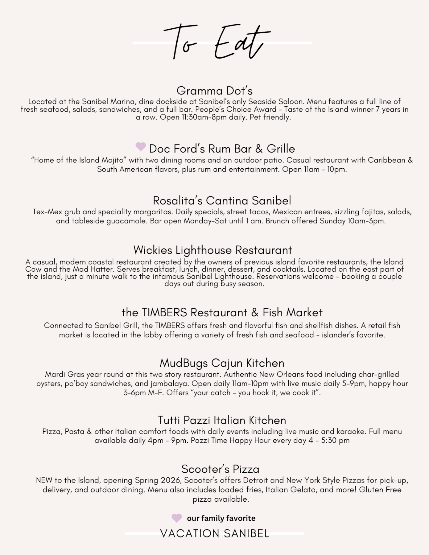 We’ve learned a thing or two about the Island since our family became owners in 1978, so we thought we would share with you! For more Island recommendations, check out our instagram @vacationsanibel