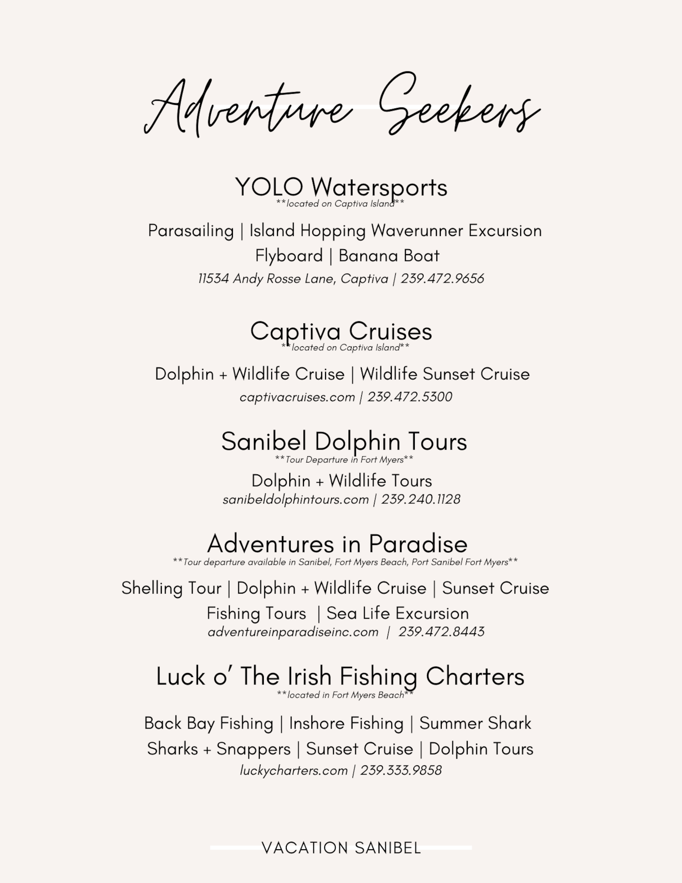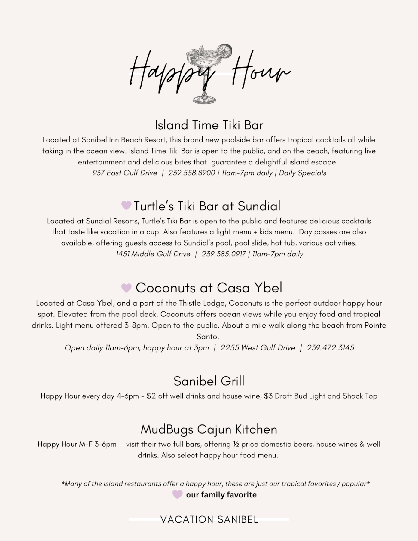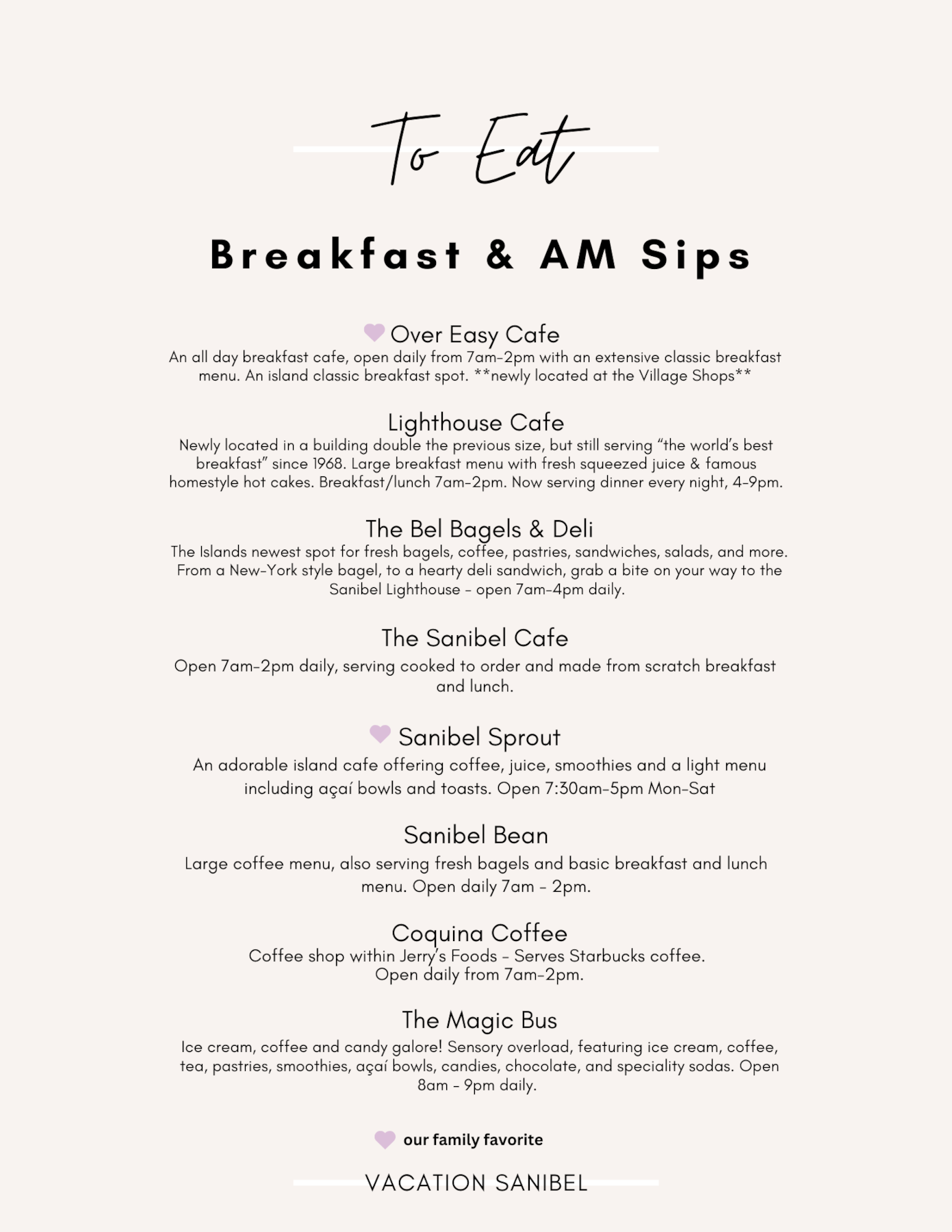We’ve learned a thing or two about the Island since our family became owners in 1978, so we thought we would share with you! For more Island recommendations, check out our instagram @vacationsanibel