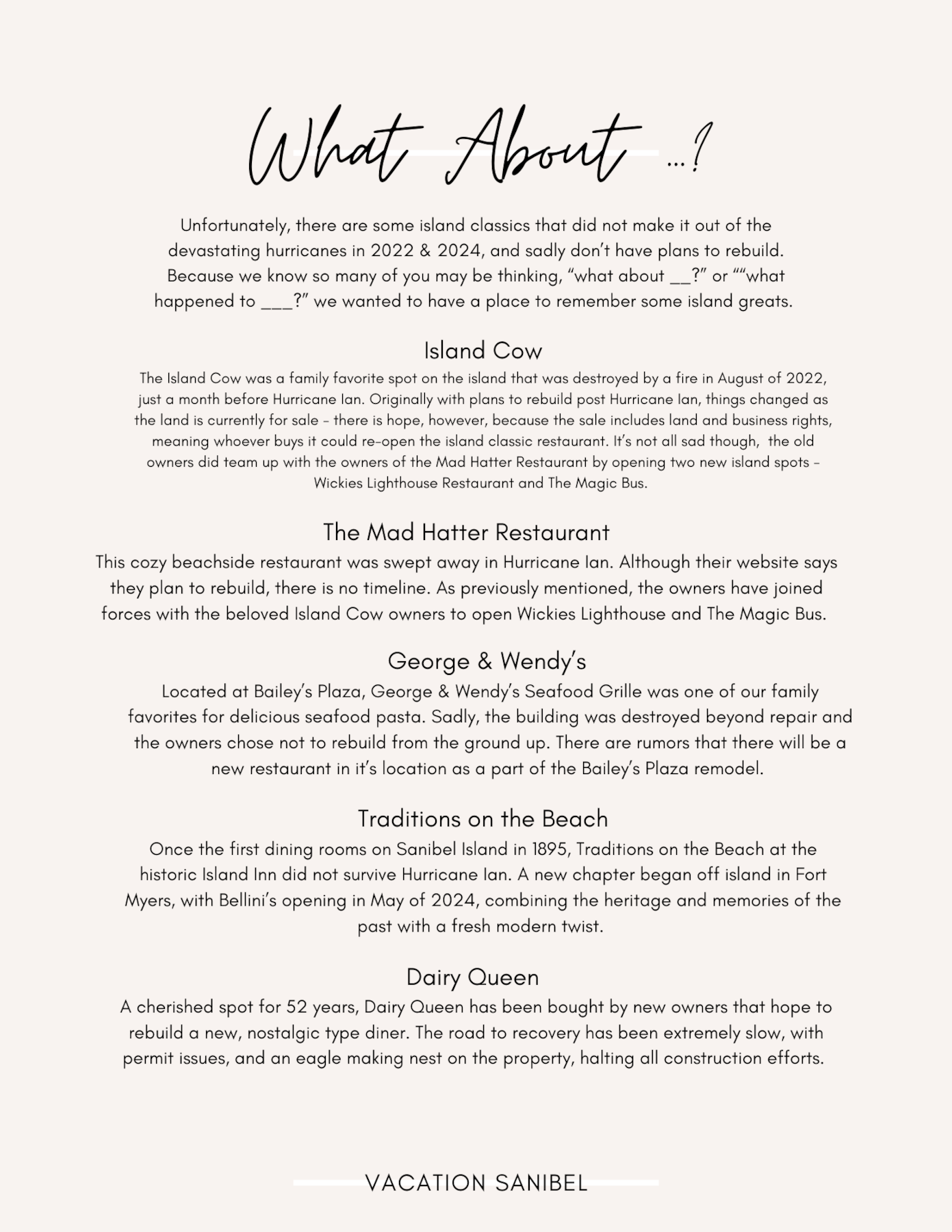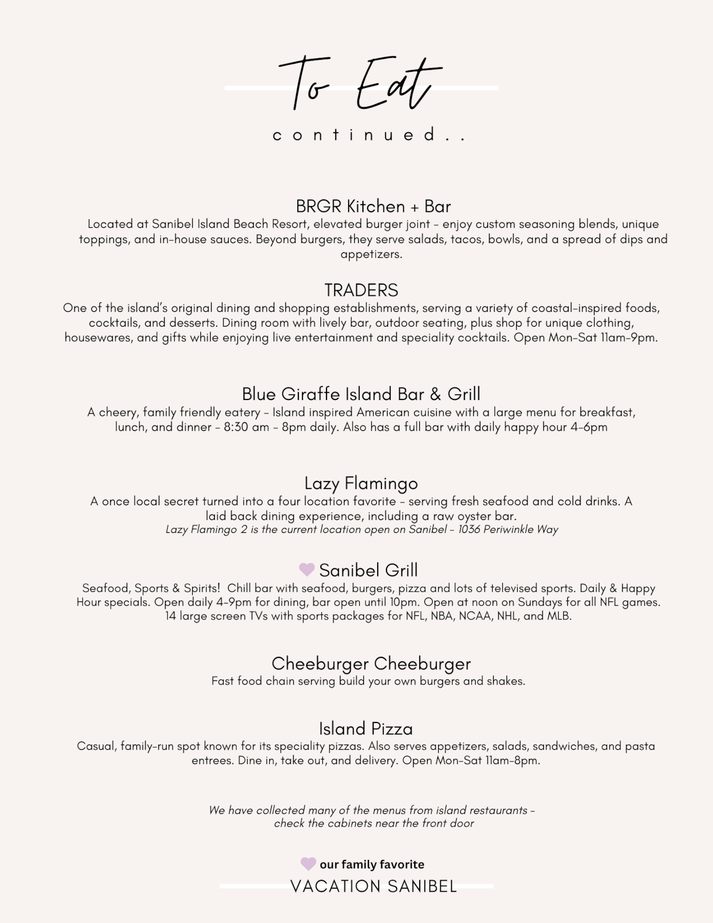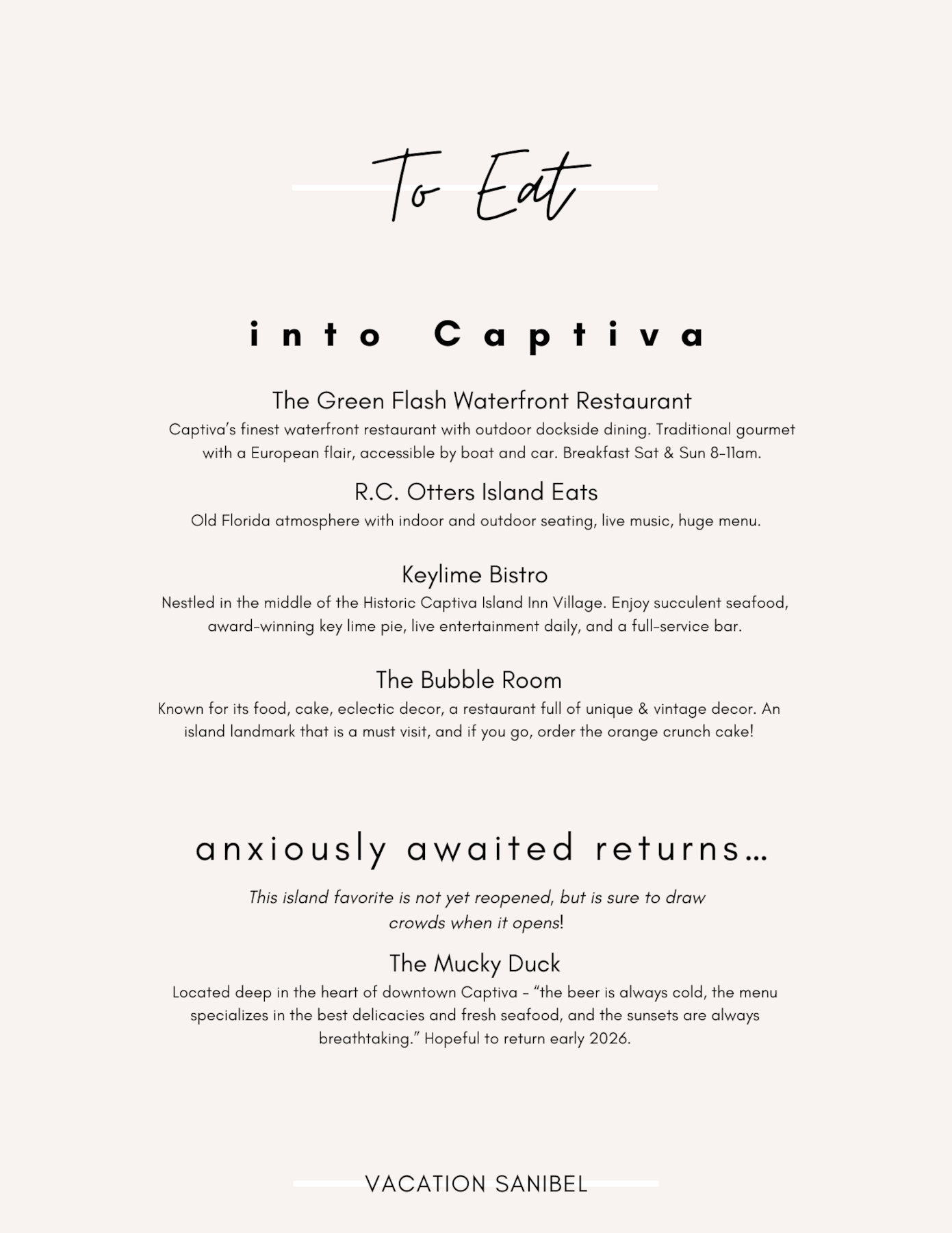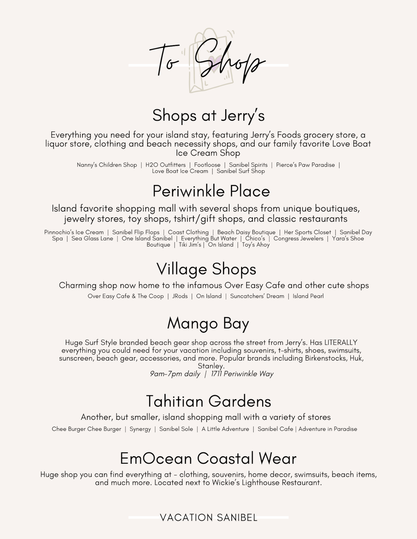 We’ve learned a thing or two about the Island since our family became owners in 1978, so we thought we would share with you! For more Island recommendations, check out our instagram @vacationsanibel